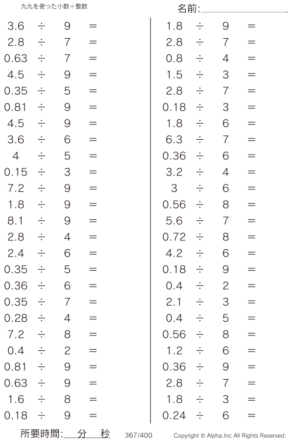 九九を使う小数 整数 問題 367 400